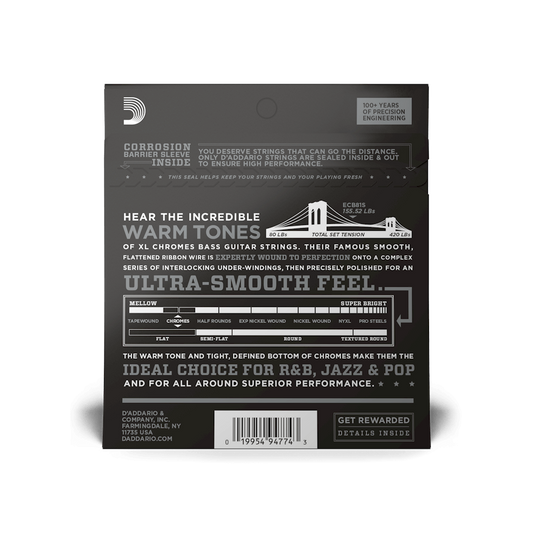 D'Addario ECB81S Chromes Short Scale Flat Wound Bass Strings 45-100