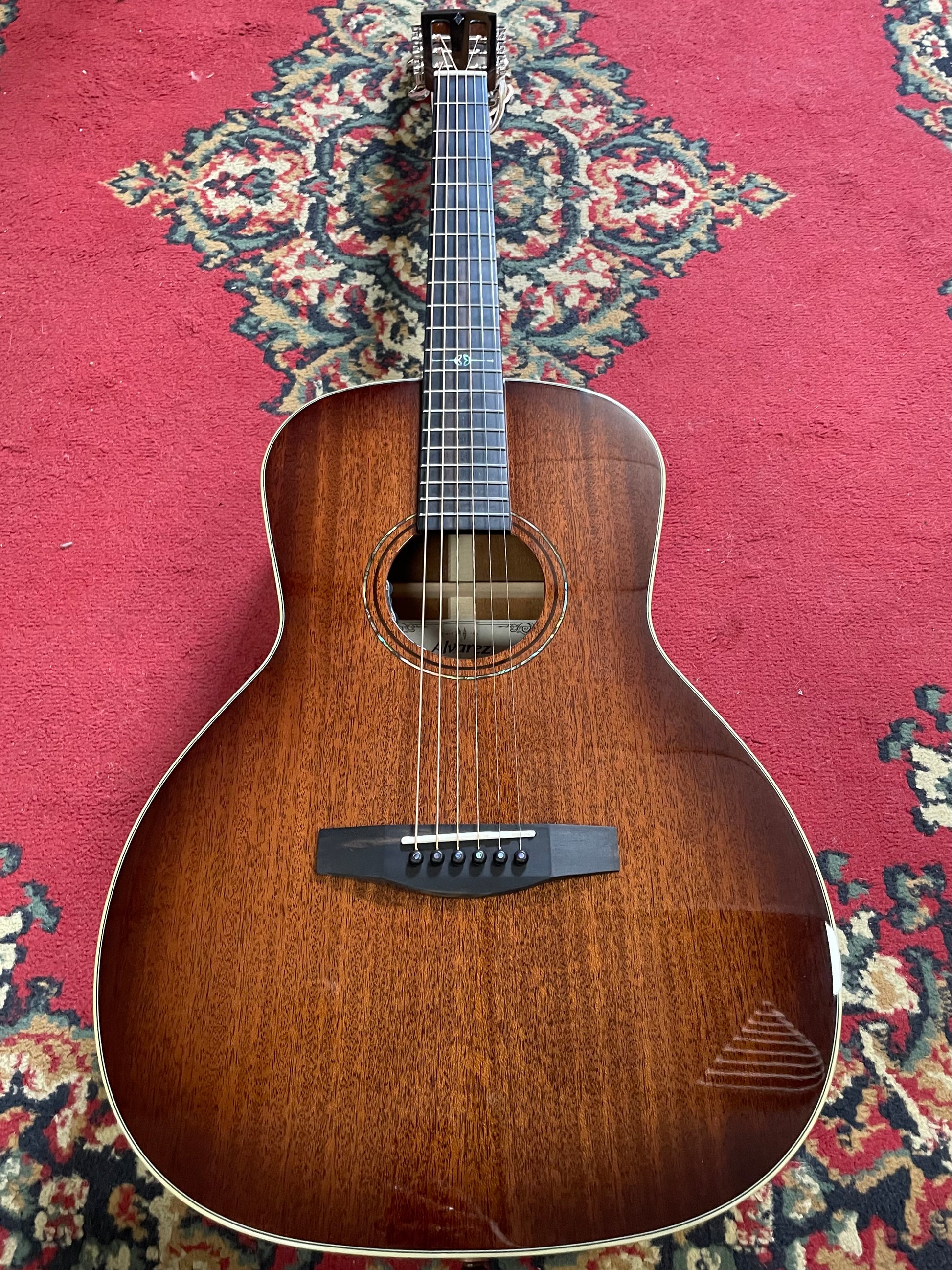 Only our finest, wonderfully quartersawn and silked Sitka, as well as hand selected African Mahogany is used in Laureate Series. The stiffness and quality of the tops allow us to thickness sand them just a tad thinner to help heighten response. Backs and sides are cut from the best East Indian Rosewood and African Mahogany that comes into our possession; bookmatched with perfect coloring.
