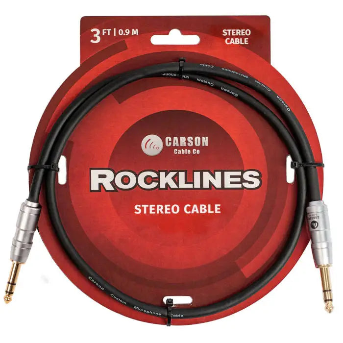 CARSON ROK03ST STEREO INSTRUMENT/AUDIO CABLE HEAVY DUTY CHROME WITH GOLD SHAFTS