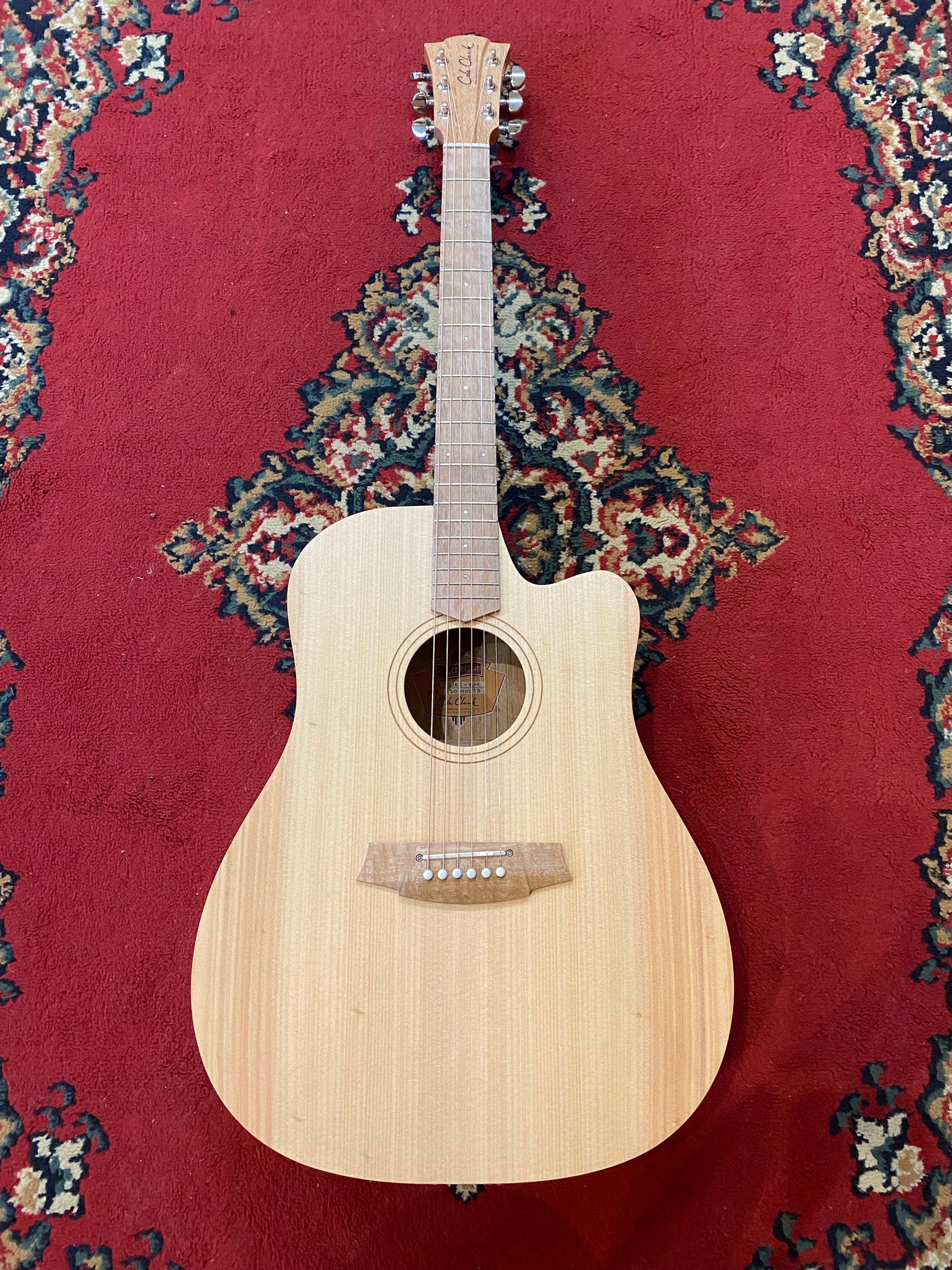 - All solid timber cutaway Dreadnought with internally carved top and back