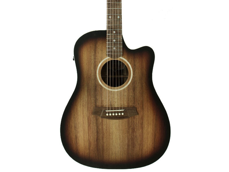 - All solid timber cutaway Dreadnought with internally carved top and back