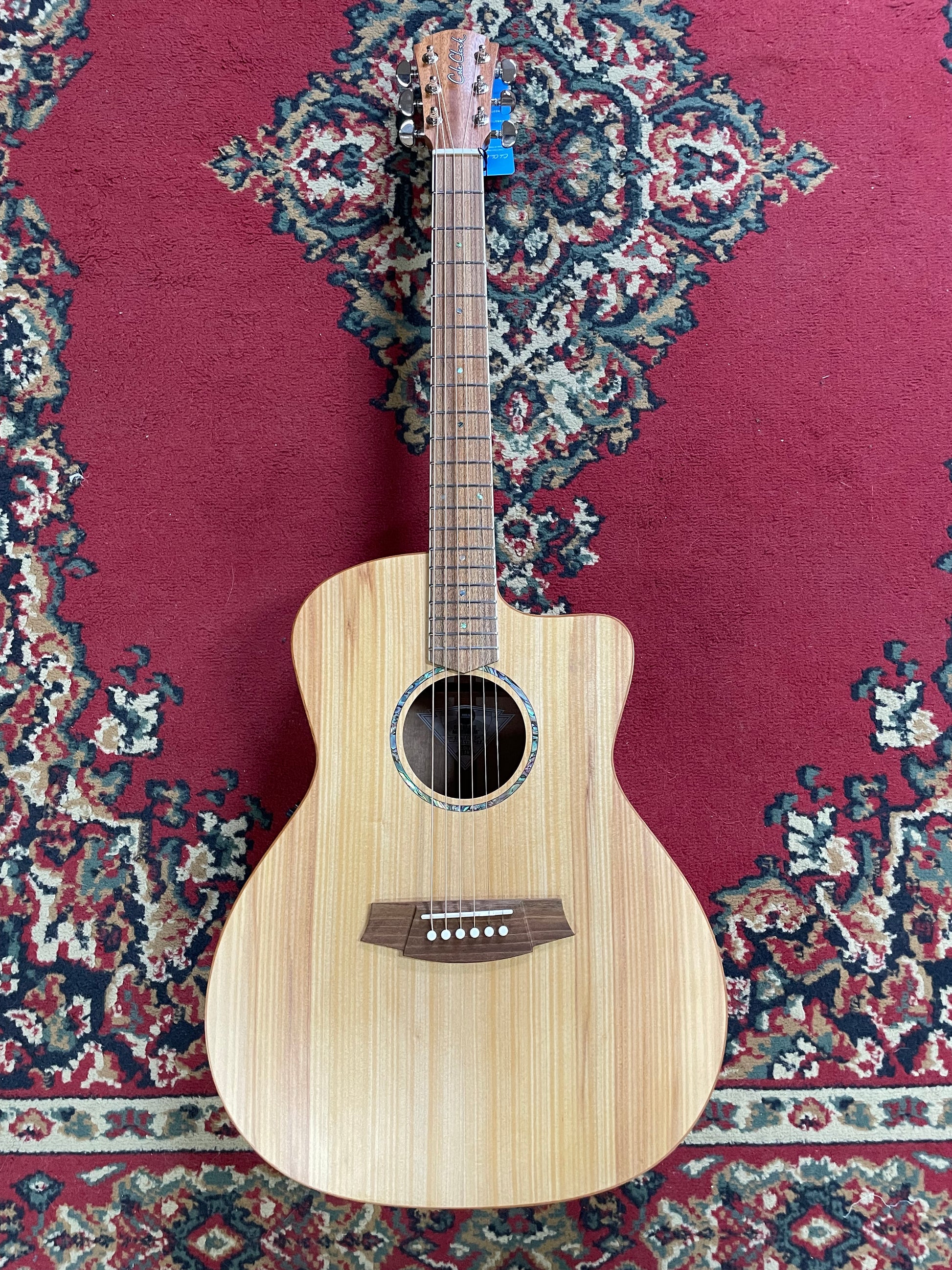 The Cole Clark SAN1EC-BM 'Bunya Pine / Queensland Maple' Acoustic Electric Guitar brings together traditional craftsmanship and forward-thinking design in a beautifully balanced instrument. Crafted in Cole Clark’s signature Grand Auditorium shape, this all-solid timber guitar pairs a Bunya Pine top with Queensland Maple back and sides—both native Australian tonewoods prized for their projection and clarity. The SAN1EC-BM is part of a unique production model where sustainable timbers are processed in Australia, assembled in China, and returned to Melbourne for expert setup—delivering outstanding value and high-end performance.