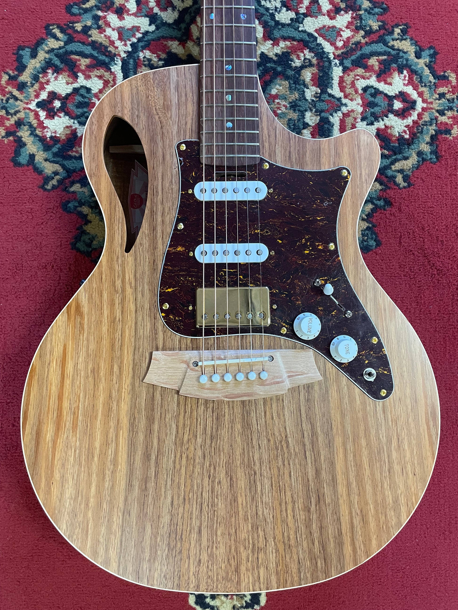 - Humbucker and 2 single coil Cole Clark balanced magnetic pickups (Separate output. Tone, volume and selector switches on face)
