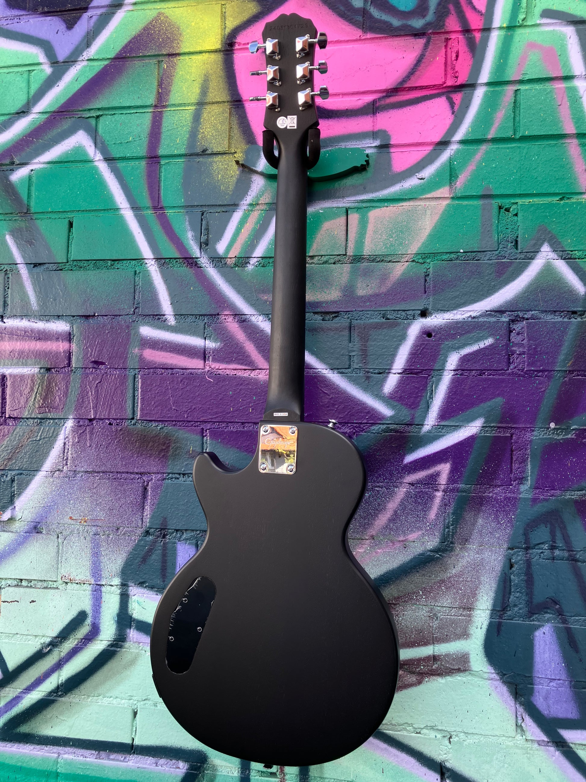 - Headstock: Epiphone "Clipped Ear"; "Les Paul Model" in gold; "Epiphone" logo in silver