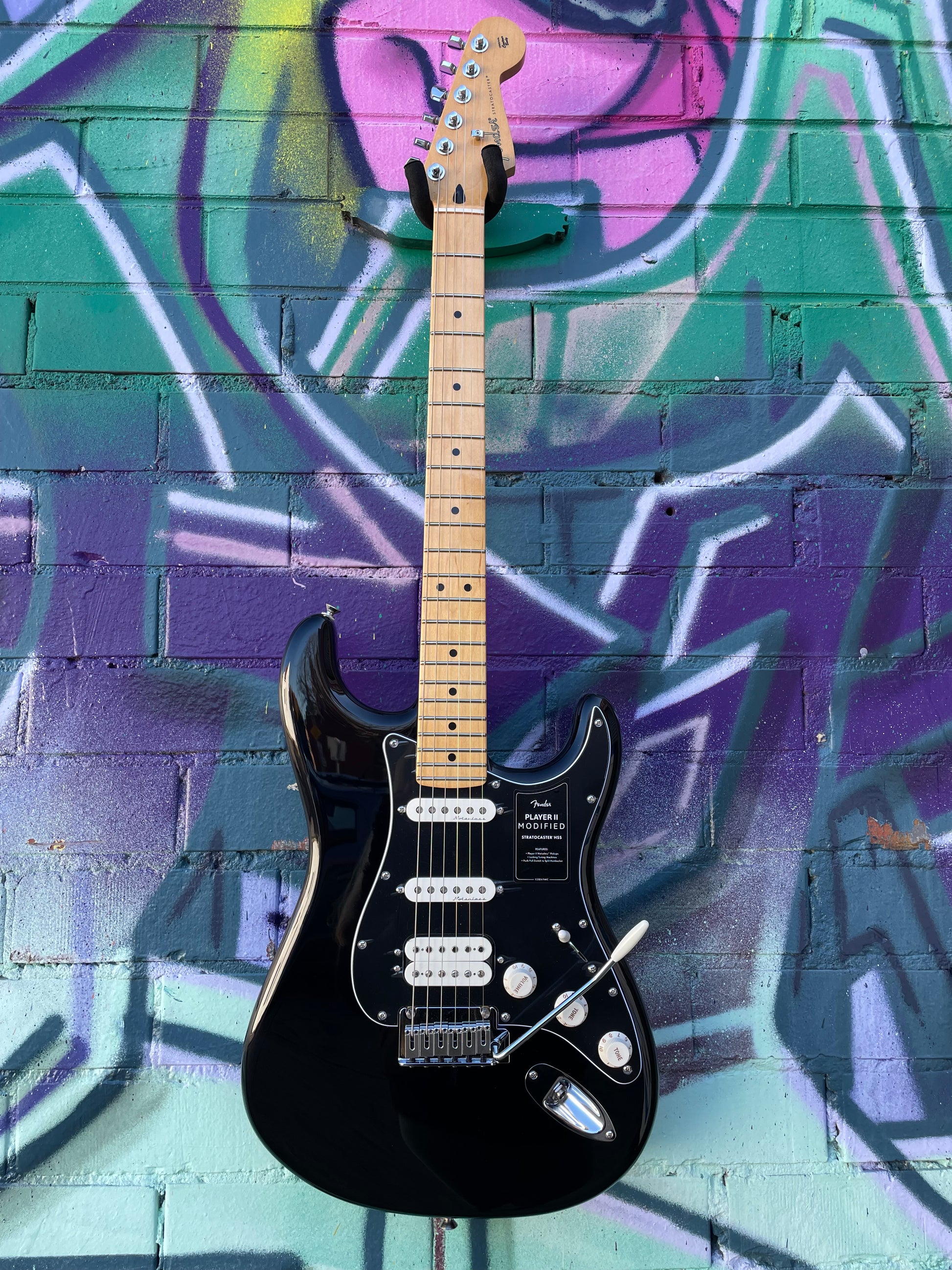 The Player II Modified Stratocaster HSS is a classic guitar with the modern player in mind. Everything about the neck is designed for fast and fluid playability, from the Modern “C”-profile with silky satin urethane finish on the back to the comfy 9.5”-radius slab rosewood or 1-piece maple fingerboard with smooth rolled edges and 22 medium jumbo frets. The alder body provides classic Fender punch and is available in a variety of exciting new finishes. The Player II Modified humbucker is articulate with plenty of output while the noiseless pickups deliver classic Strat chime and sparkle while eliminating unwanted noise. For additional tonal flexibility the push/pull switch on the 2tone control splits the bridge humbucker for classic Strat single-coil tones. The 2-point tremolo, short post locking tuners, TUSQ nut and modern string tree all combine to keep tuning incredibly stable as the wider travel of the chamfered tremolo block allows players to coax even more expressive, musical vibrato from their instrument.