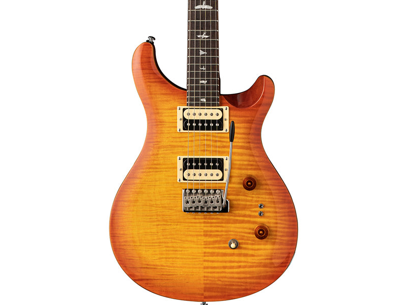 The Custom 24 is the quintessential PRS guitar: the iconic guitar that started it all back in 1985. The Custom 24-08 keeps all the foundational specs of the instrument, while taking the Custom platform to new sonic territories. Like the Core Series instrument, the SE Custom 24-08 features two mini-toggle coil split switches that individually split the humbuckers into true single coils for a total of eight pickup configurations. Classic design elements include a maple top, mahogany back, rosewood fretboard, 24 frets, 25” scale length, bird inlays, signature headstock logo, and PRS patented molded tremolo.