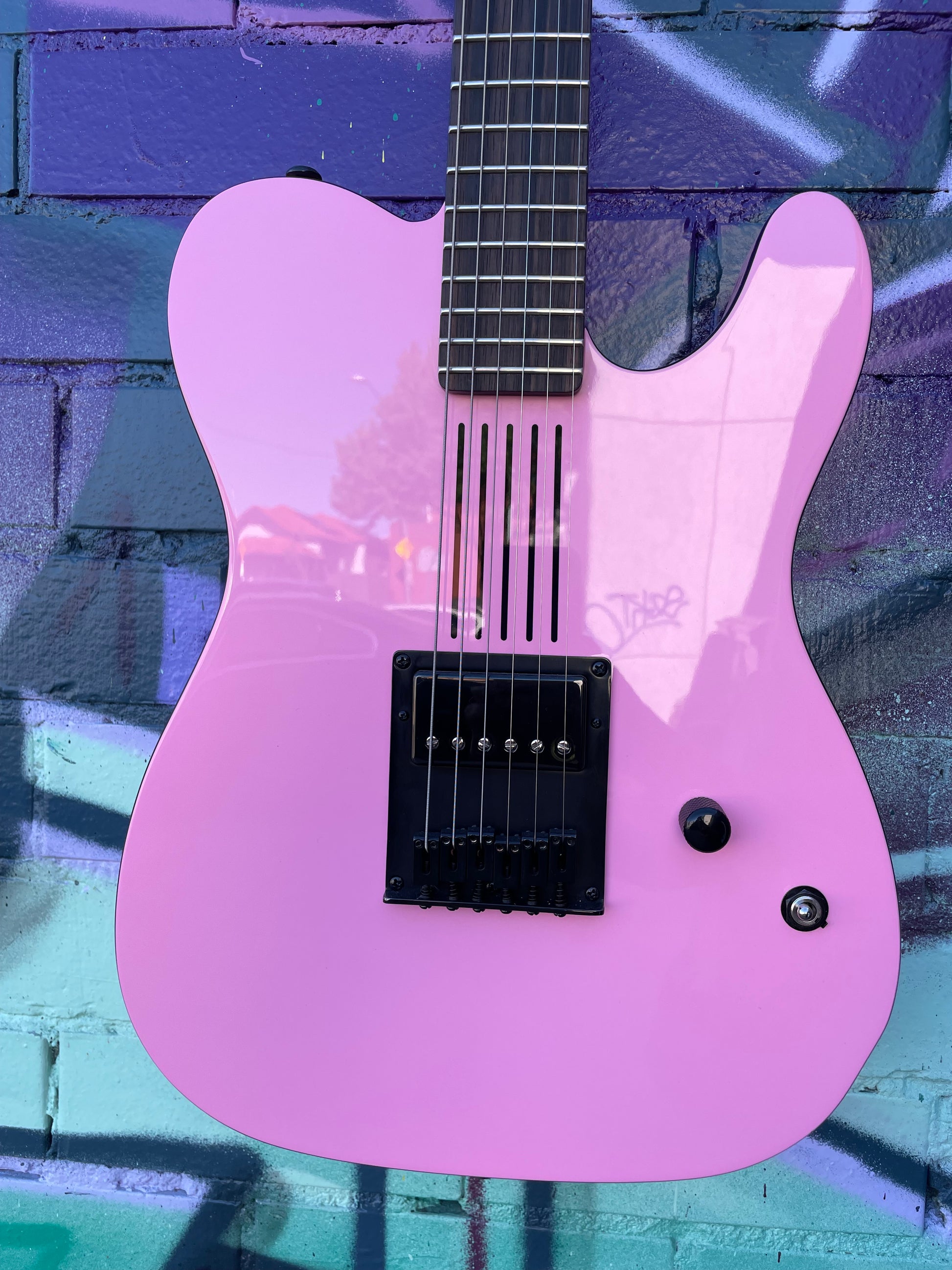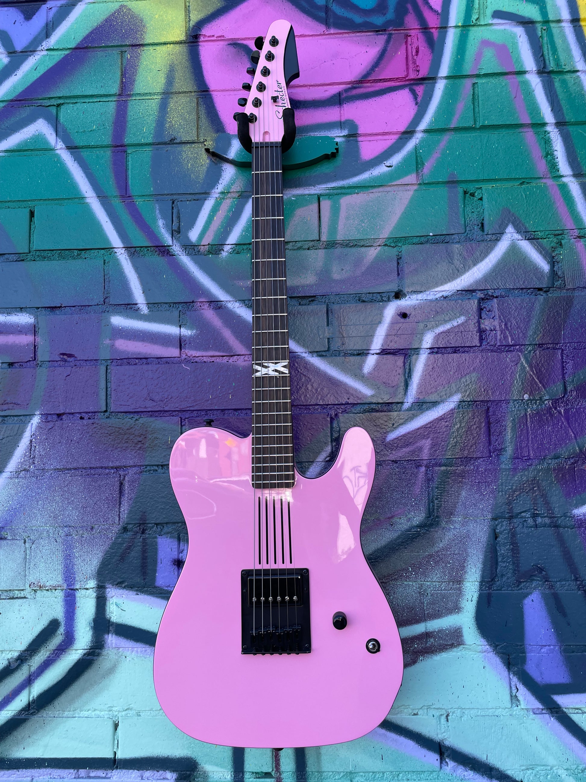 This guitar was born to be played loud, and it certainly looks the part! Taking heavy inspiration from MGKs personal axe, the pink body complements the black binding and hardware to establish a 2-tone theme that extends all the way up to the headstock. This Schecter signature guitar also checks a lot of boxes in terms of quality aesthetic appeal. One of the most noteworthy elements is the ebony fingerboard, which sports one top fret marker in the form of a double X on the 12th fret along with glow in the dark side markers, Lying beneath the scorching-hot paint job is the potent tonewood combo of an alder body and a maple neck.