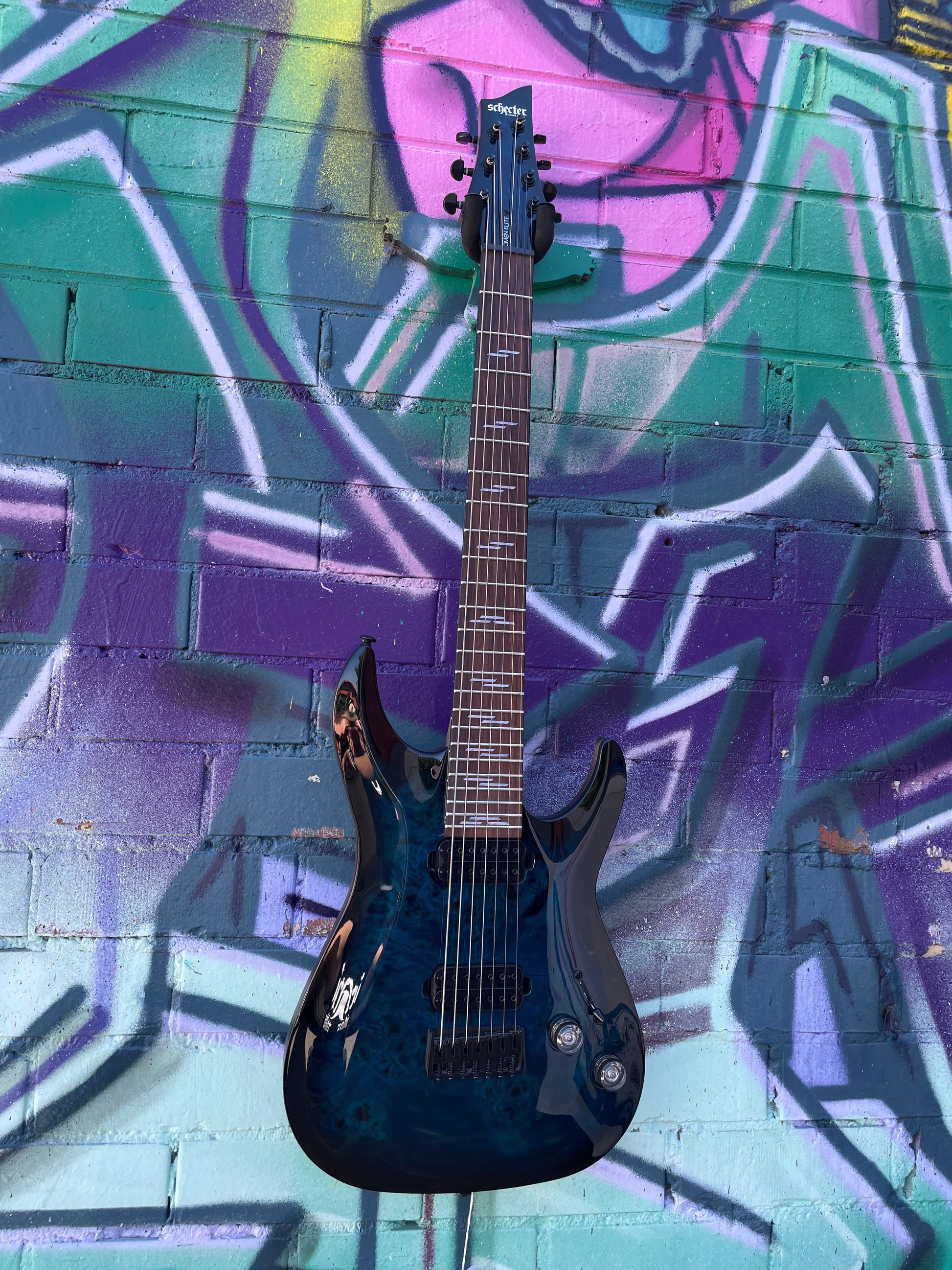 Schecter Omen Elite-7 Electric Guitar - See Thru Blue Burst